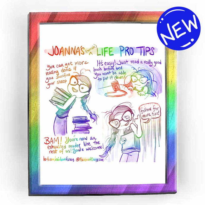 Rainbowofcrazy web comic. / Jo holding a book: