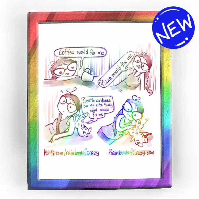 Rainbowofcrazy web comic: Our Saviour. / A white & brown rabbit, arms crossed, shivering: