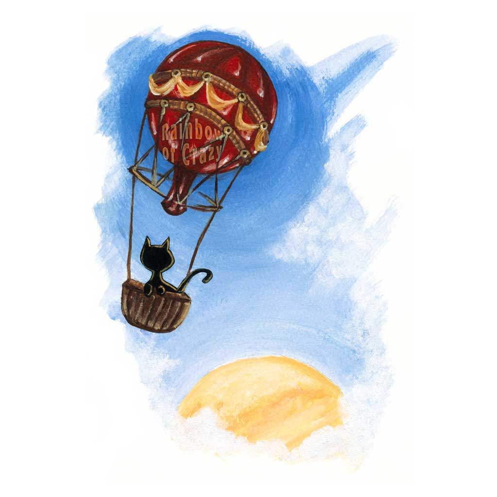 Black Cat Hot Air Balloon / Art Print