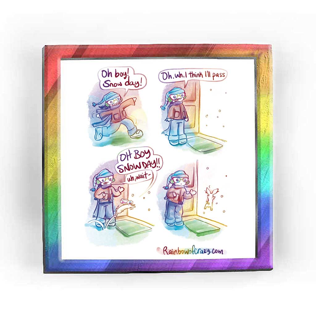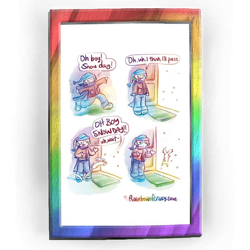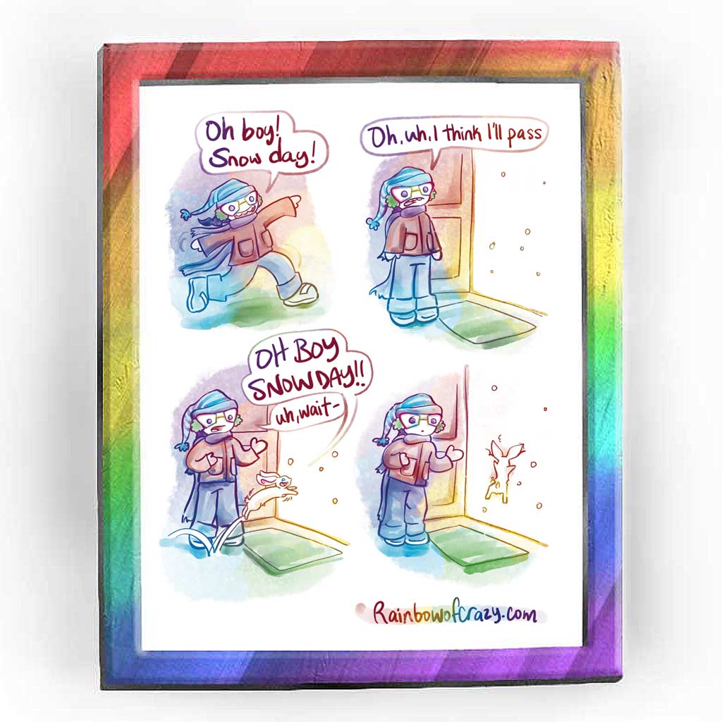 Full alt text: Rainbowofcrazy Comics: "Snow Day"