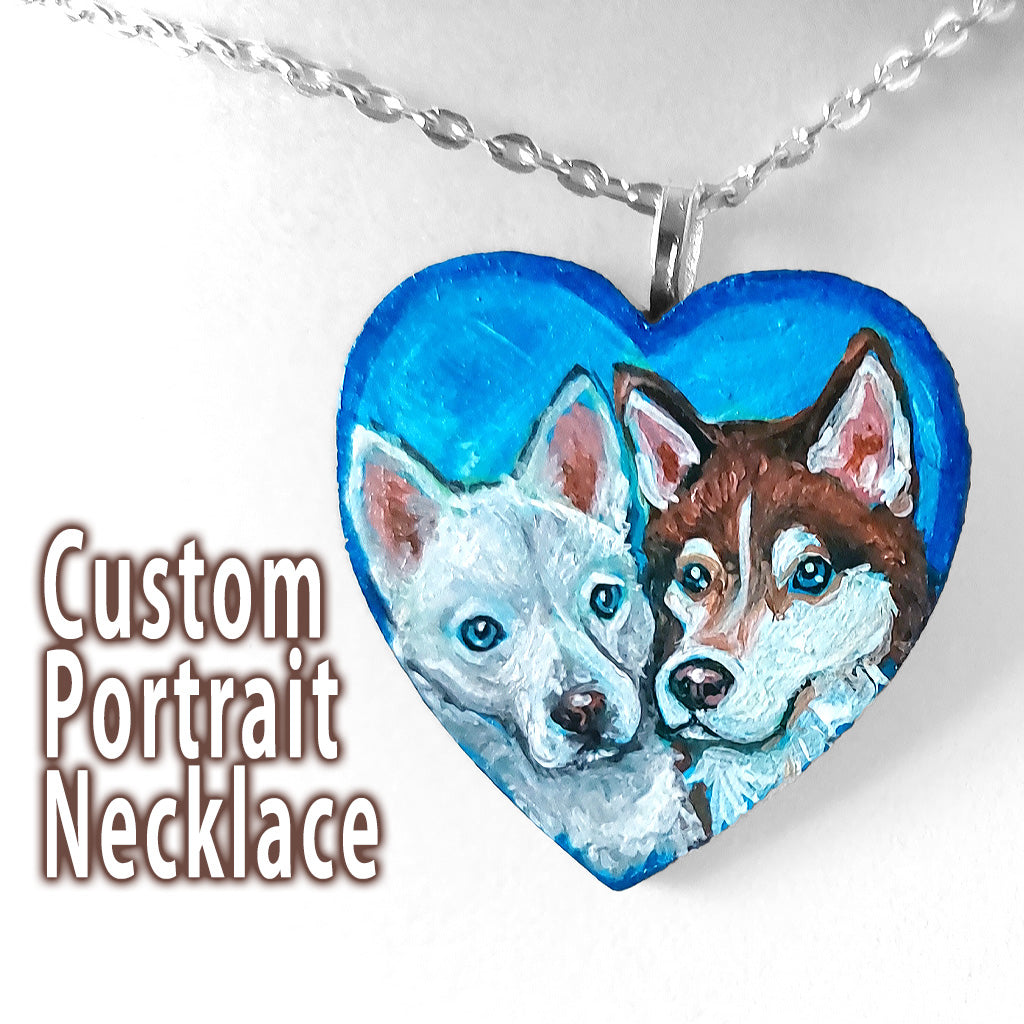 Looking for a way to keep your beautiful pet close? Pet portrait necklaces are unique and personalized for you! Each necklace is hand painted with your beloved best friend. Portraits also make heartwarming sympathy gifts for friends that have experienced pet loss. Each pendant shaped like a heart! Made from smooth birch wood, these pendants are very lightweight and durable.