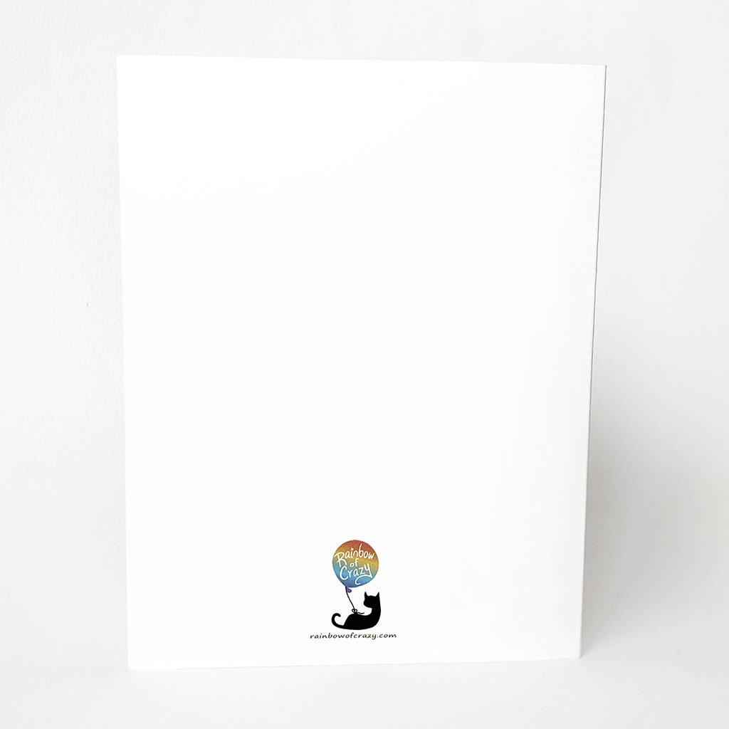 The back of a greeting card, which includes the Rainbow of Crazy logo
