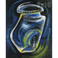 Available as an art print, 'The Jar' portrays the often unseen struggles of mental health. Within a large jar, a tiny figure fights against their confinement. This artwork represents  personal struggles with chronic illness, and inner demons.